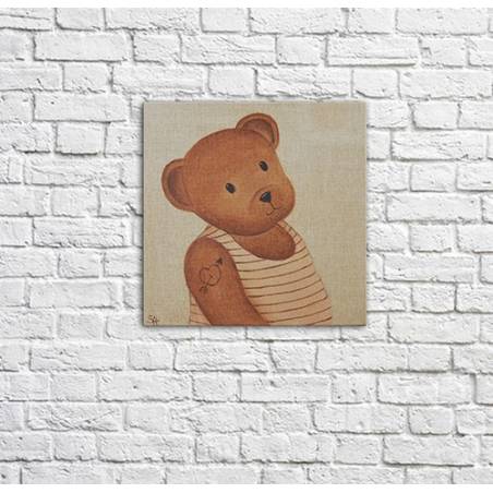 C'est un peinture sur toile de lin brute. J'ai utilisé des pigments naturels additionnés à un liant acrylique qui confère une parfaite durée dans le temps des couleurs.