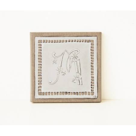 N'oubliez pas de sauvegarder votre personnalisation pour pouvoir l'ajouter au panierCe tableau est peint par mes soins sur une toile de lin brute, imitant un monogramme brodé sur un napperon jour échelle,