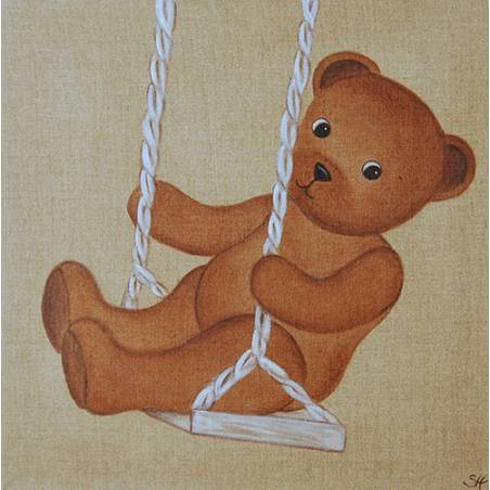 Ce nounours attend bien sagement sur sa balançoire une famille d'adoption.